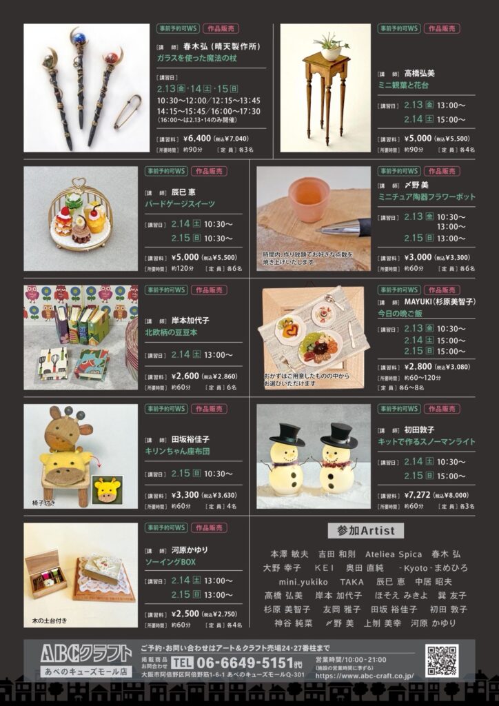 ABCクラフト あべのキューズモール店にて『~魅惑の小さな世界~ ドールファクトリー』に出展します。ぜひご来場ください。