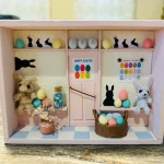 3月「HAPPY EASTER」樹脂粘土や木・紙などを使って素敵なドールハウスを作ります。一回のレッスンで作品を仕上げてお持ち帰りできるという手軽さが好評です。