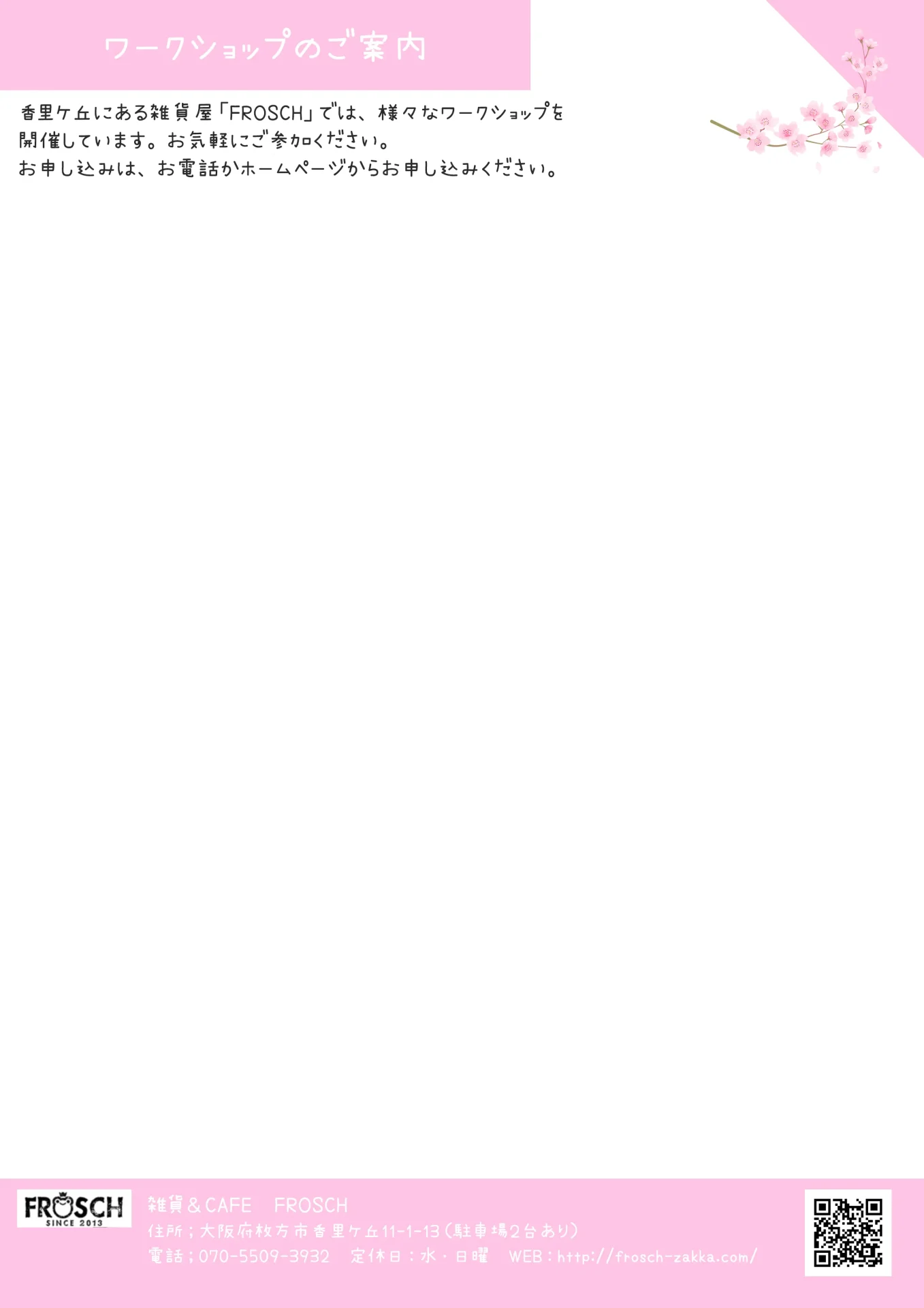 ハンドメイド雑貨FROSCH(大阪府枚方市)ではさまざまなワークショップを開催しています。
