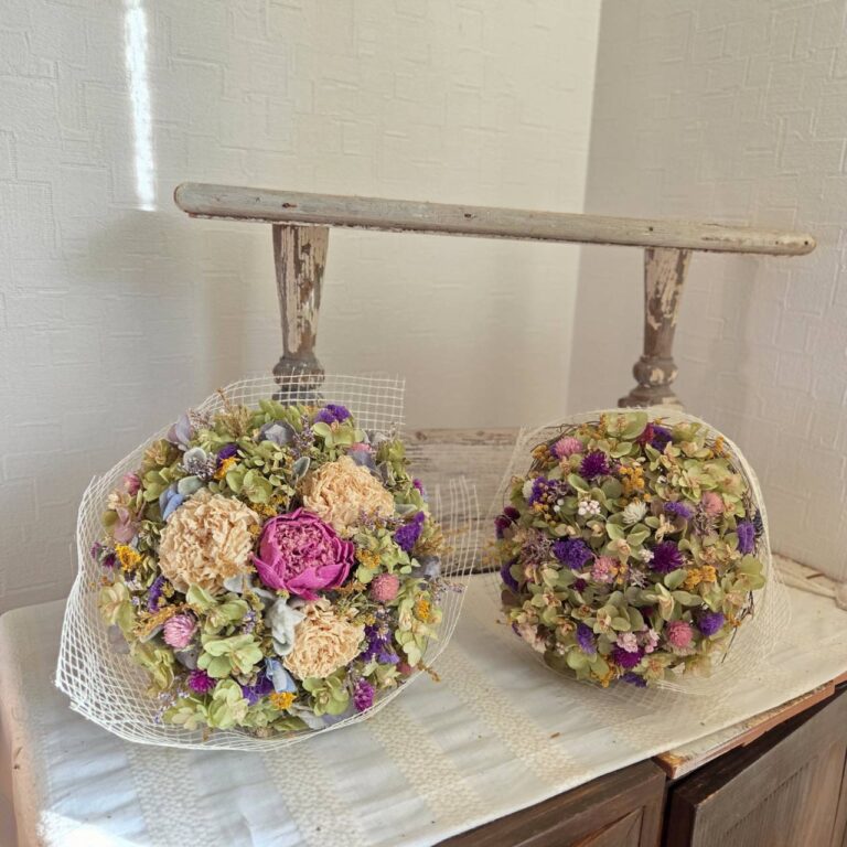 ドライフラワーを束ねて素敵なブーケを作りましょう。